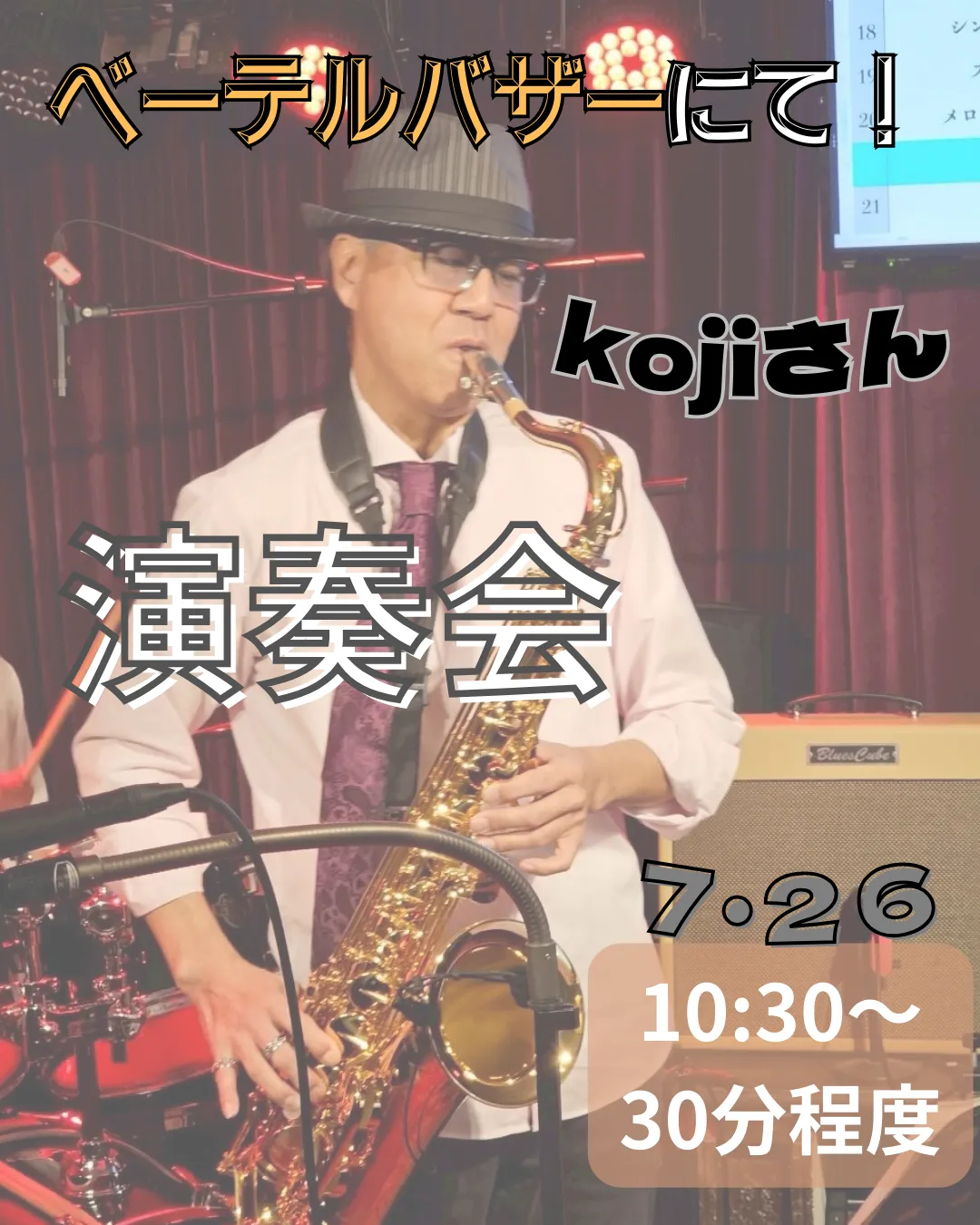 今月のバザーで演奏会開催🎷