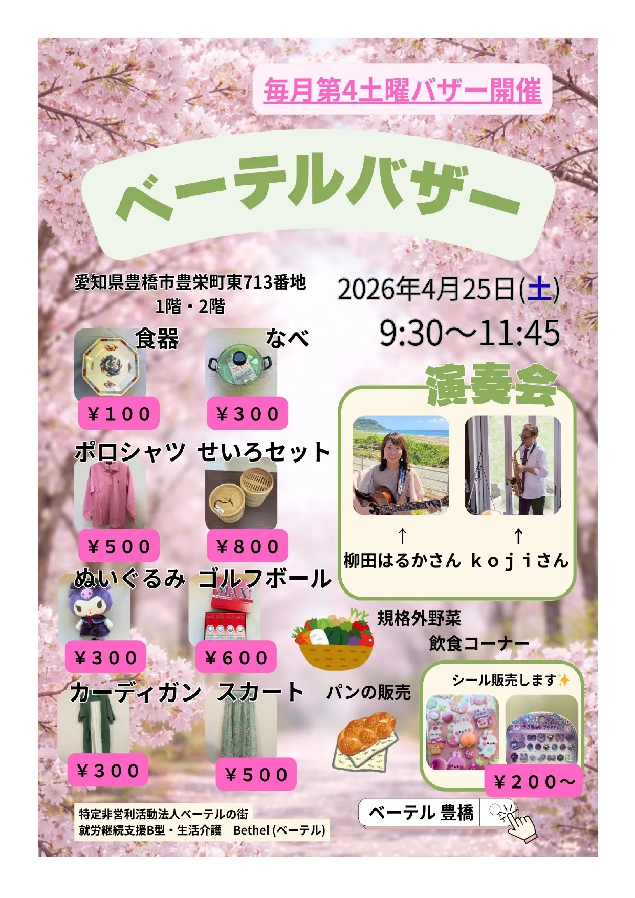 2026年4月のバザーは25日(土)9時半~11時45分に開催予定です。