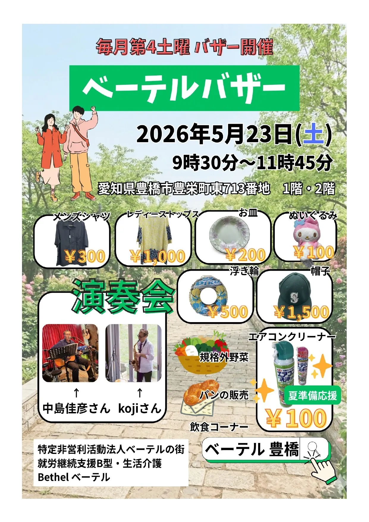 2026年5月のバザーは23日(土)9時半~11時45分に開催予定です。